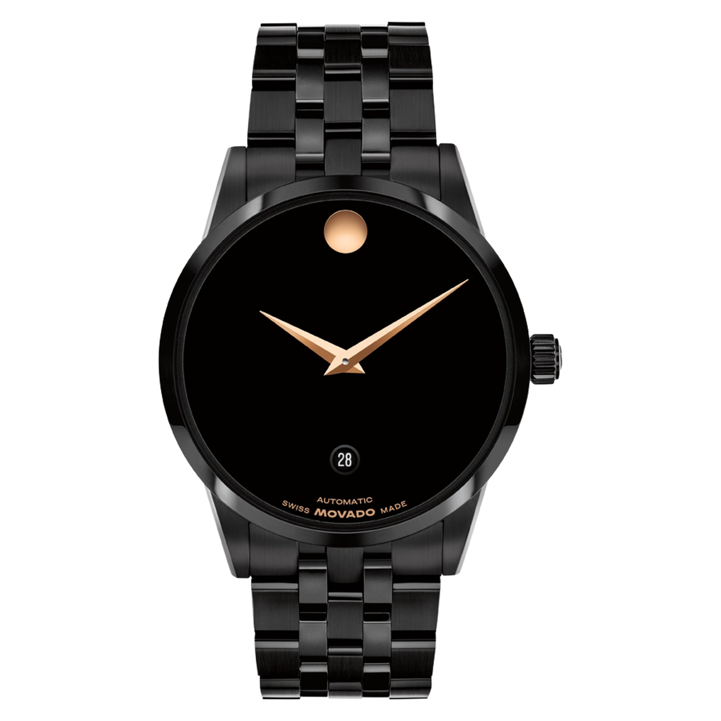 Original price $1,095.00 - Original price $1,095.00Original price$1,095.00$1,095.00 - $1,095.00Current price $1,095.00| /Movado Museum Classic Automatic Black Dial Rose PVD Leather Unisex's Watch 0608026